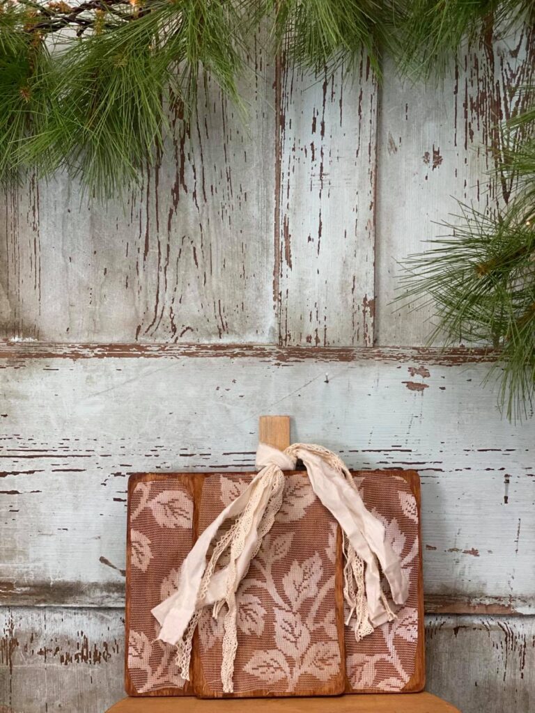 In this Dollar Tree cutting board pumpkin DIY, lace adds the perfect touch of texture and vintage charm to a simple wood base. By layering soft lace around the board and letting it peek through the paint, the pumpkin gets a delicate, cozy feel that pairs beautifully with rustic fall décor. It’s a lovely example of how lace can soften and elevate seasonal projects with just a bit of crafty detail.