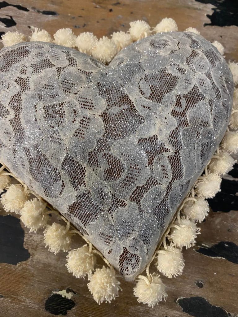 In this Dollar Tree jumbo craft heart makeover, lace becomes the star texture that instantly elevates the plain heart into a sweet, shabby-chic décor piece. Wrapping and layering delicate lace around the heart adds softness and romantic charm, proving that a simple material like lace can turn an everyday craft find into something beautifully cozy and special.