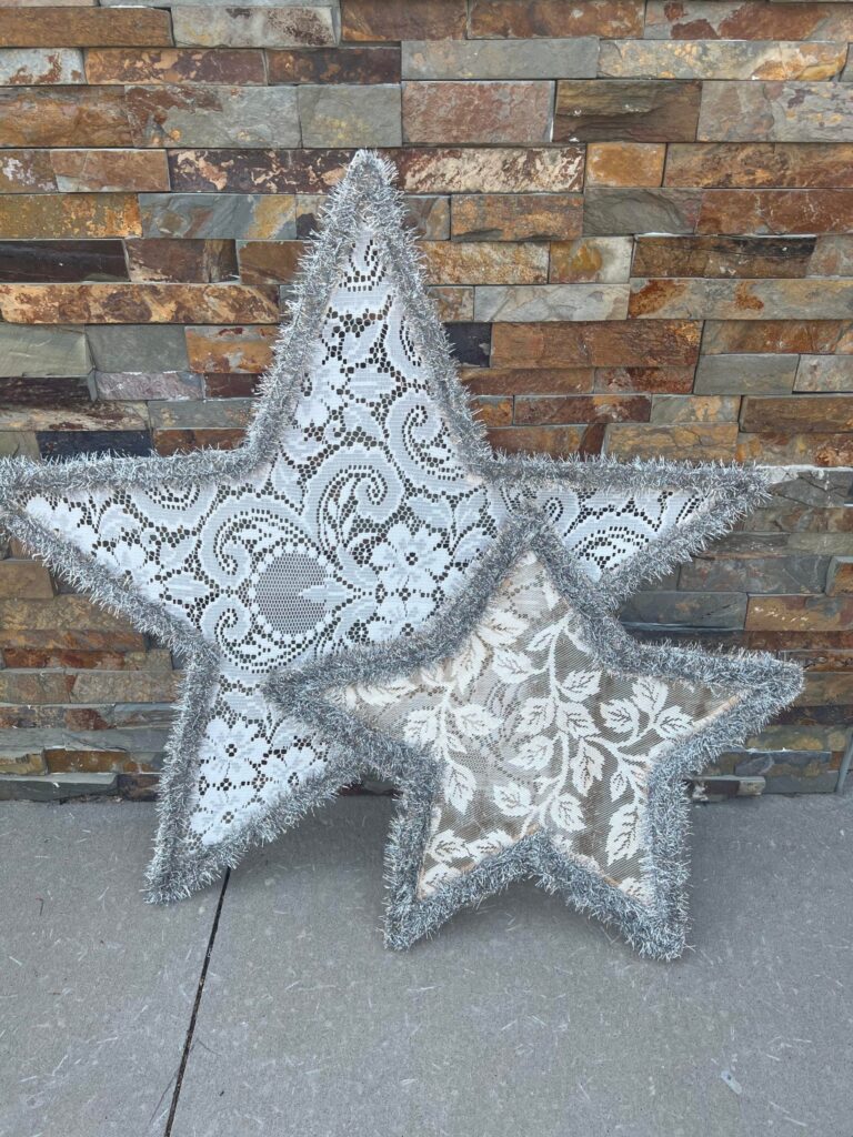 In this charming wooden shim star DIY, lace is what brings lovely texture and vintage flair to the simple wood shape. After forming and gluing the shims into a star, the creator drapes soft lace curtains over the piece and hot-glues them in place for a delicate, shabby chic finish. It’s a perfect example of how lace can elevate even basic materials into timeless decor.