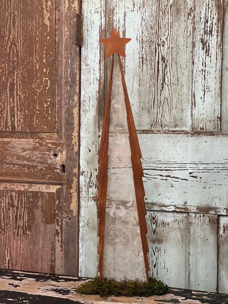 In this charming wooden shim and lace tree project, lace is what brings softness and vintage texture to the rustic wood base. The delicate lace is layered and wrapped around the shims, giving the tree a cozy, shabby-chic look that elevates the simple wooden form into beautiful seasonal décor. It’s a lovely example of how lace can add romantic charm and visual interest to even the most basic materials.
