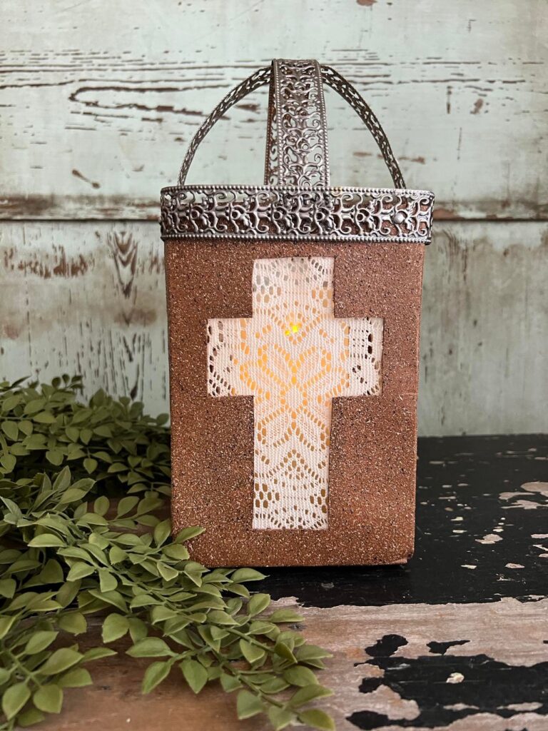 Click here to check out the blog: https://theshabbytree.com/diy-cross-lantern/