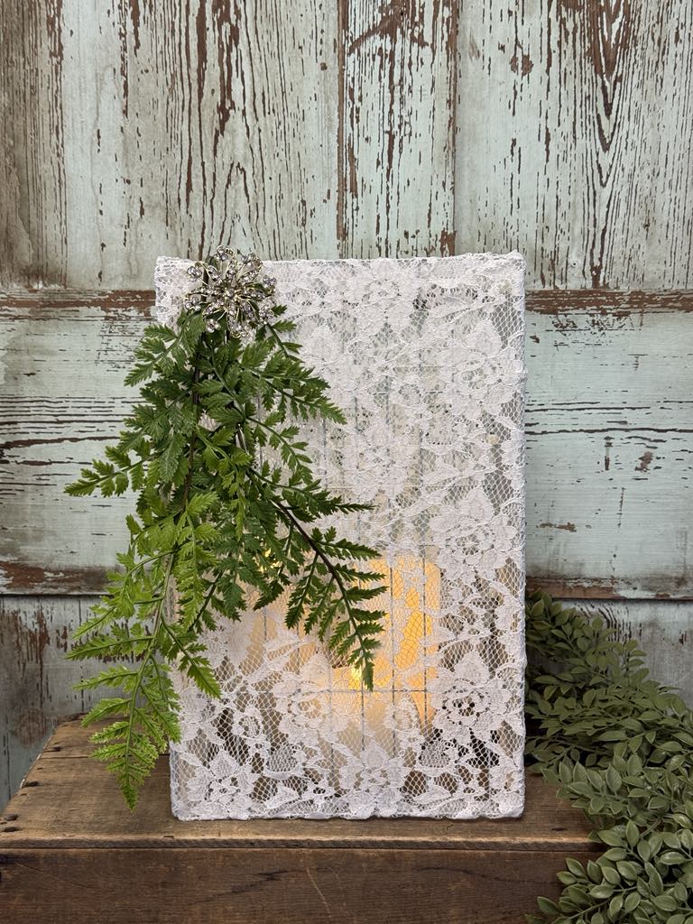 In this DIY cross lantern project, delicate lace is the beautiful texture that softens the rustic structure and adds vintage charm. The lace is layered or wrapped inside the lantern frame so that when the light shines through, it casts cozy, intricate patterns that feel warm and meaningful. It’s a lovely example of how lace can transform a simple lantern into a softly illuminated décor piece with timeless appeal.