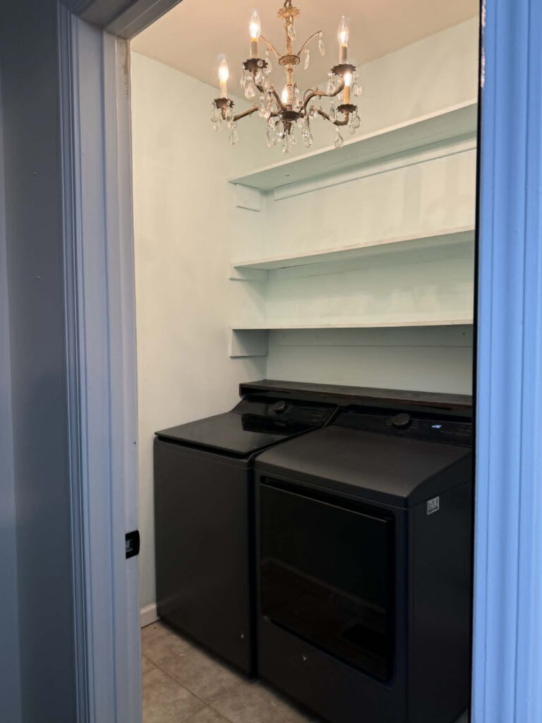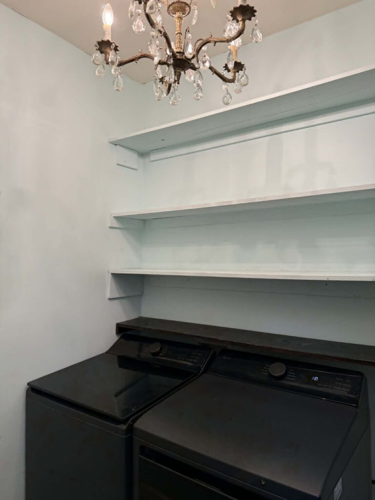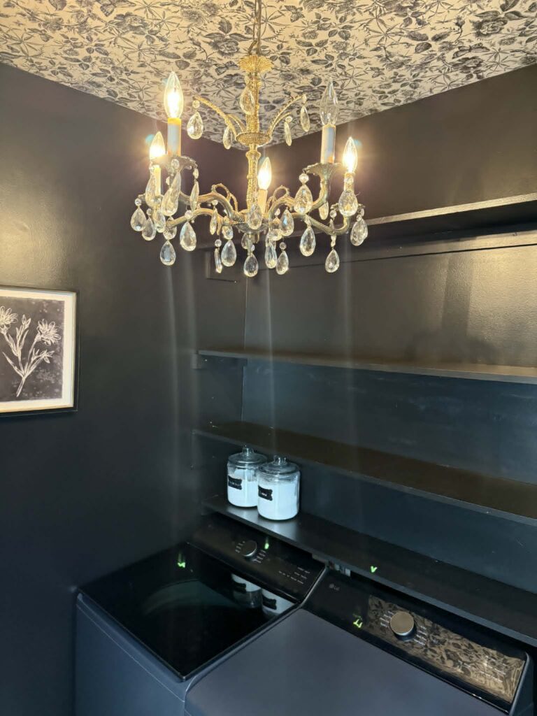 The crystal chandelier gives my laundry room a fun, elegant look.