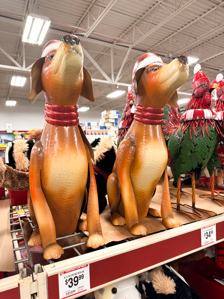 These metal pups are dressed for the season with Santa hats and red scarves. They’d look adorable sitting by the front door or fireplace.