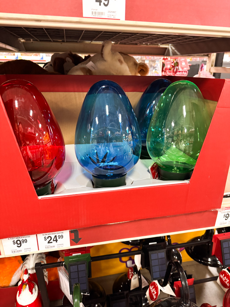 These jumbo bulbs come in bright red, blue, and green and instantly add a cheerful pop of color to any outdoor display. They look just like classic Christmas lights but on a larger, more festive scale!