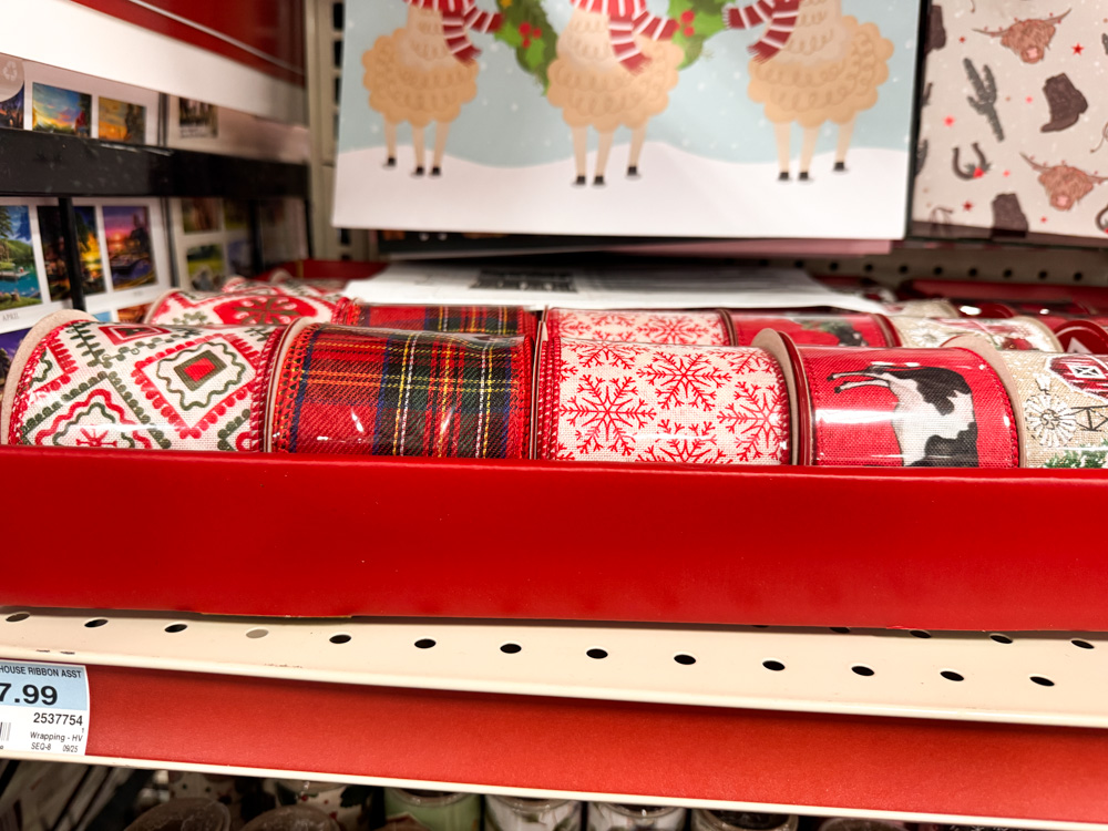 So many pretty ribbons to choose from — from plaid and snowflakes to little cows wearing Santa hats. Perfect for wrapping, crafting, or adding to wreaths and bows.