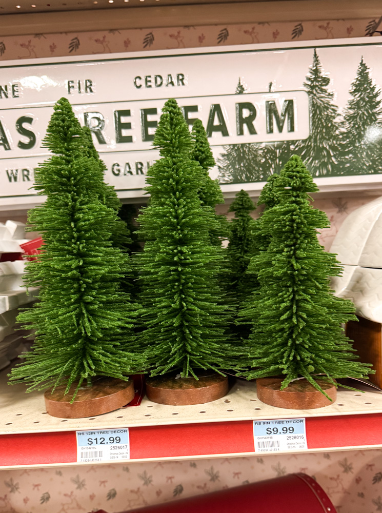 These bottle-brush style trees come in a few sizes and instantly add that cozy forest feel. They’re perfect for village displays or tucking onto a tiered tray.