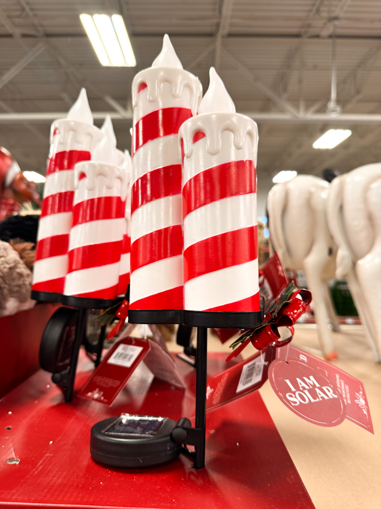 These striped red and white solar candles look just like peppermint candy sticks! They light up beautifully and add instant holiday charm to your outdoor decor.
