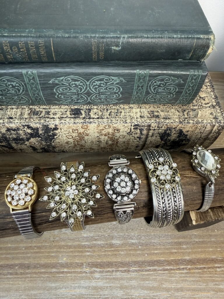 Once you have a good selection of vintage or outdated watches, it’s time to start the creative part. Look for some bling—rhinestones, broken jewelry pieces, charms, or decorative findings—that will pair beautifully with the watches. Mixing old watches with sparkly embellishments is an easy way to create unique DIY statement jewelry that has tons of character and charm.