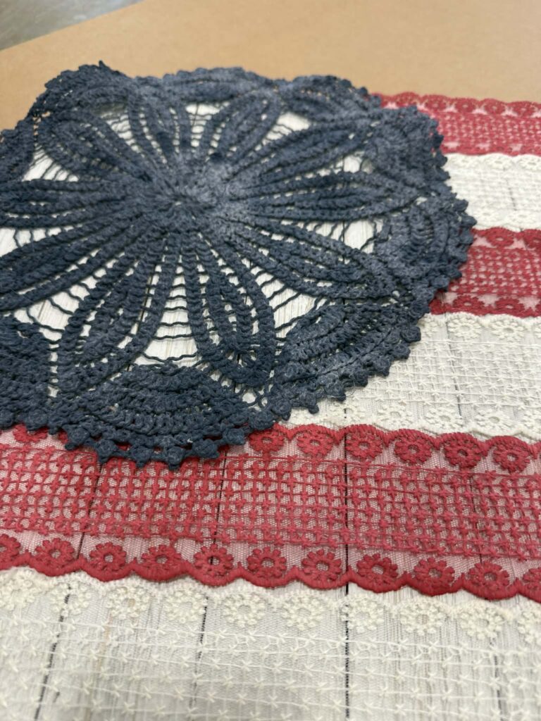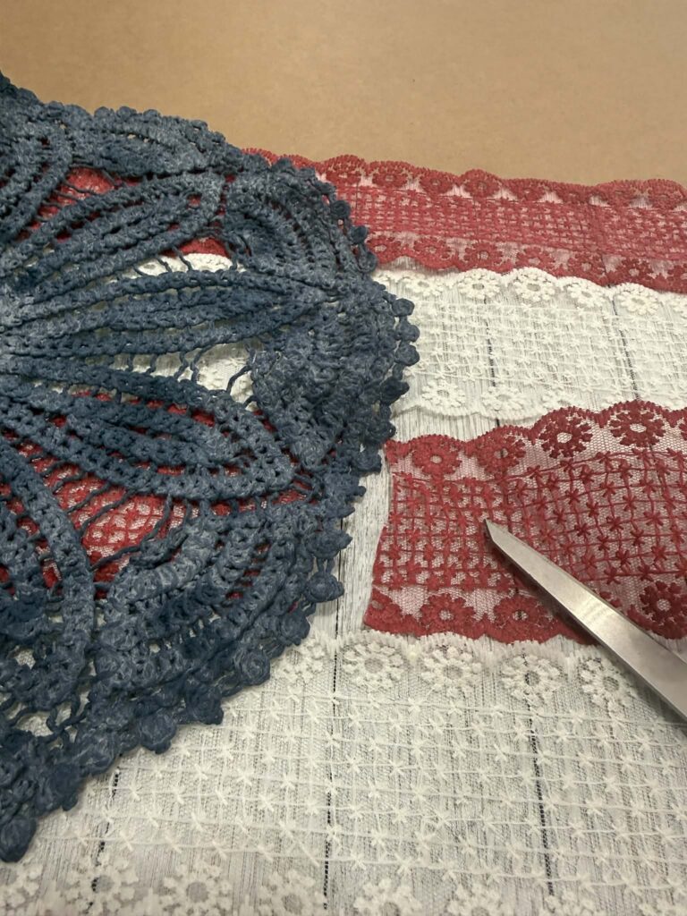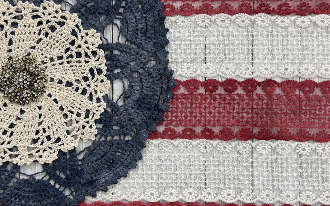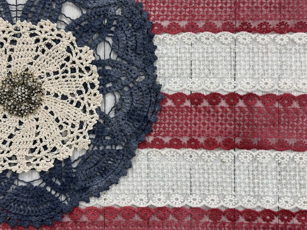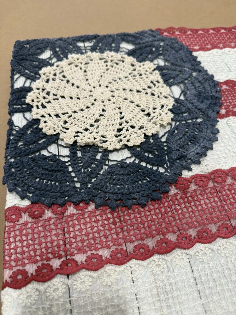 I love creating home decor using lace and doilies. We recently added a beautiful wide lace ribbon to our website, and I’m so excited to get creative with it. There are so many different ways to use lace ribbon in DIY home decor, but I thought it would be fun to create an Americana flag decoration.