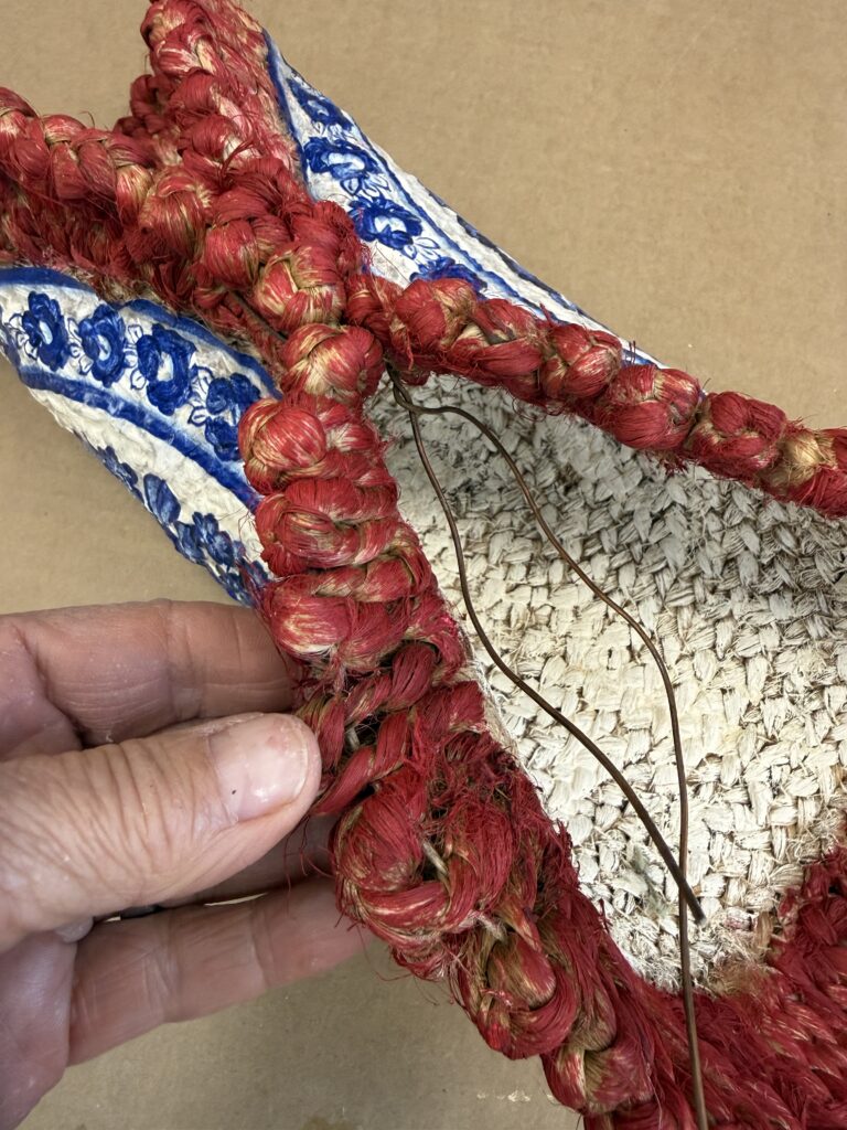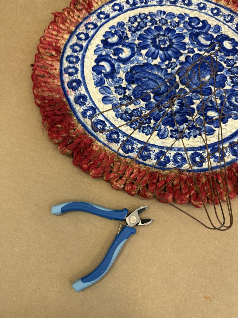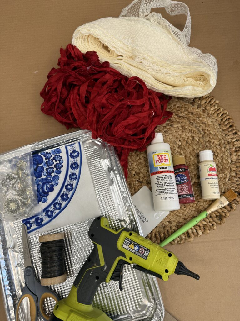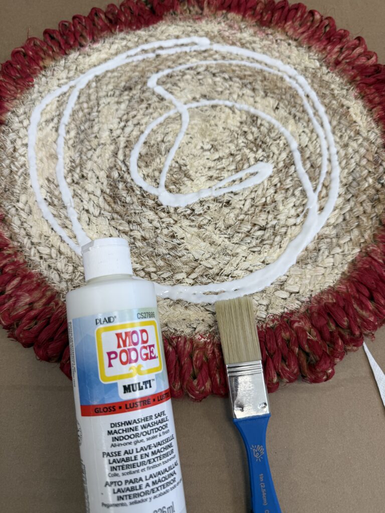 I used a piece of wire to attach the ribbon to the wire that is holding the placemat together.