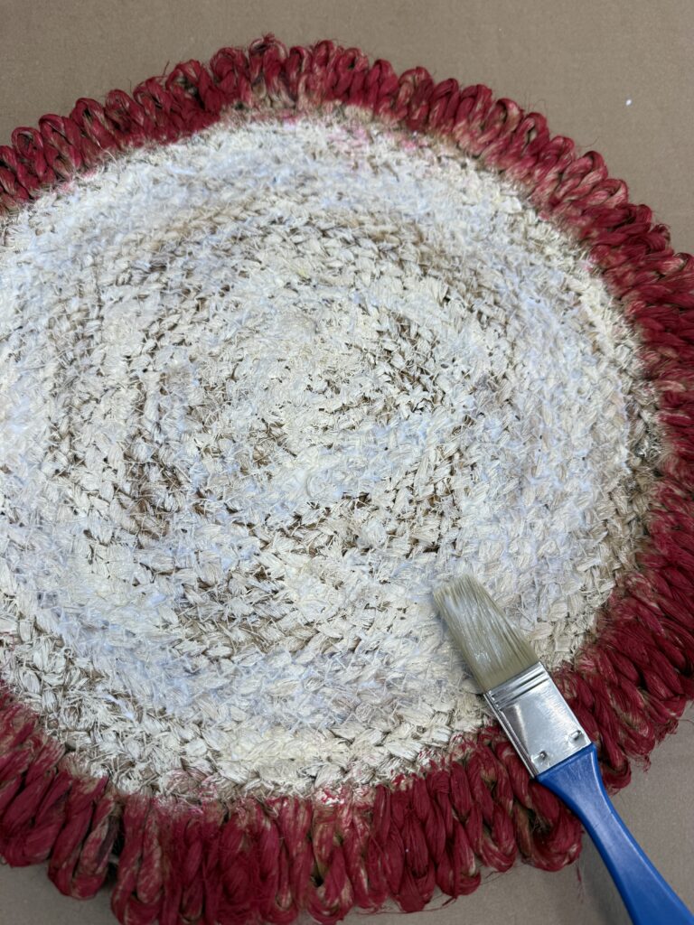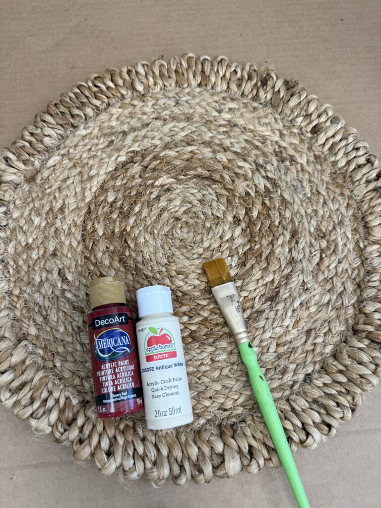 The first thing we want to do is give our placemat a little makeover with some paint. This will help that napkin stand out, and the red really brings in that fun Americana feel!