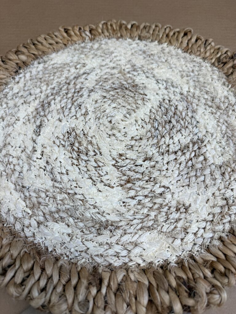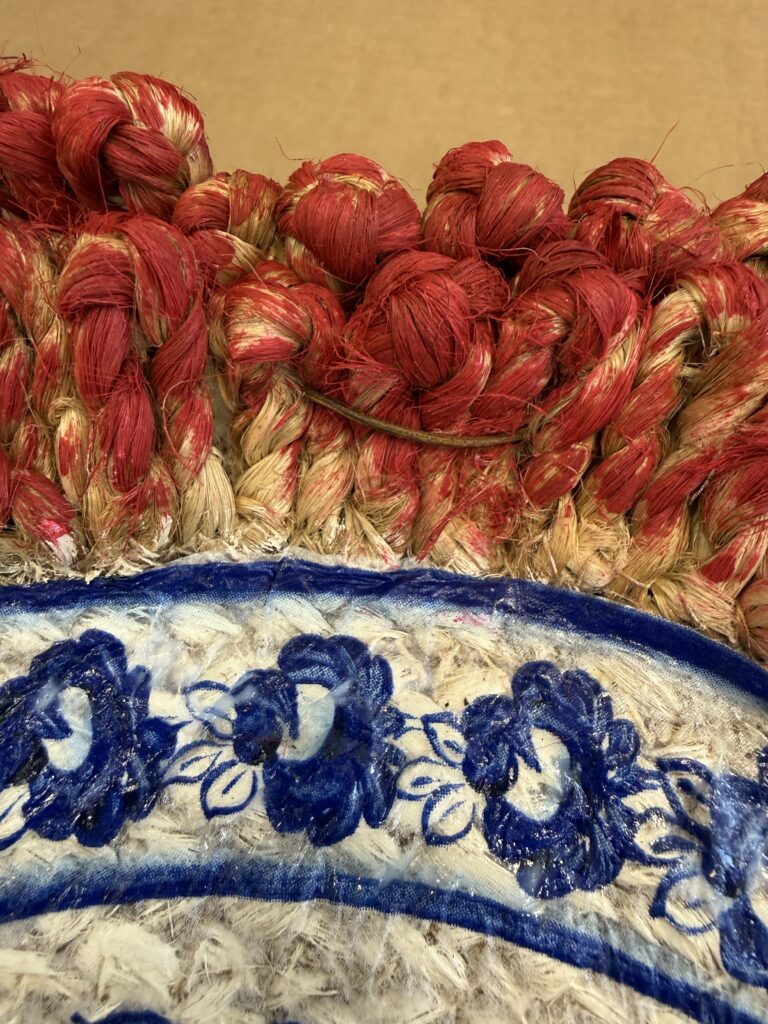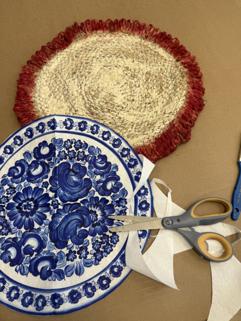 I started by cutting around the circle of the napkin to get it ready for the placemat.