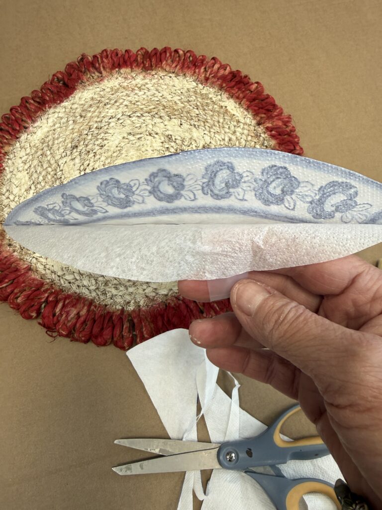 Next, I used a little tape to remove the extra layers of the napkin that we don’t need.