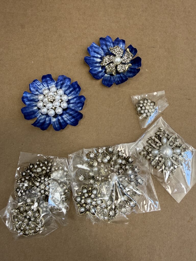 I chose the piece with pearls and used a little hot glue to secure it to the center of one of the flowers.