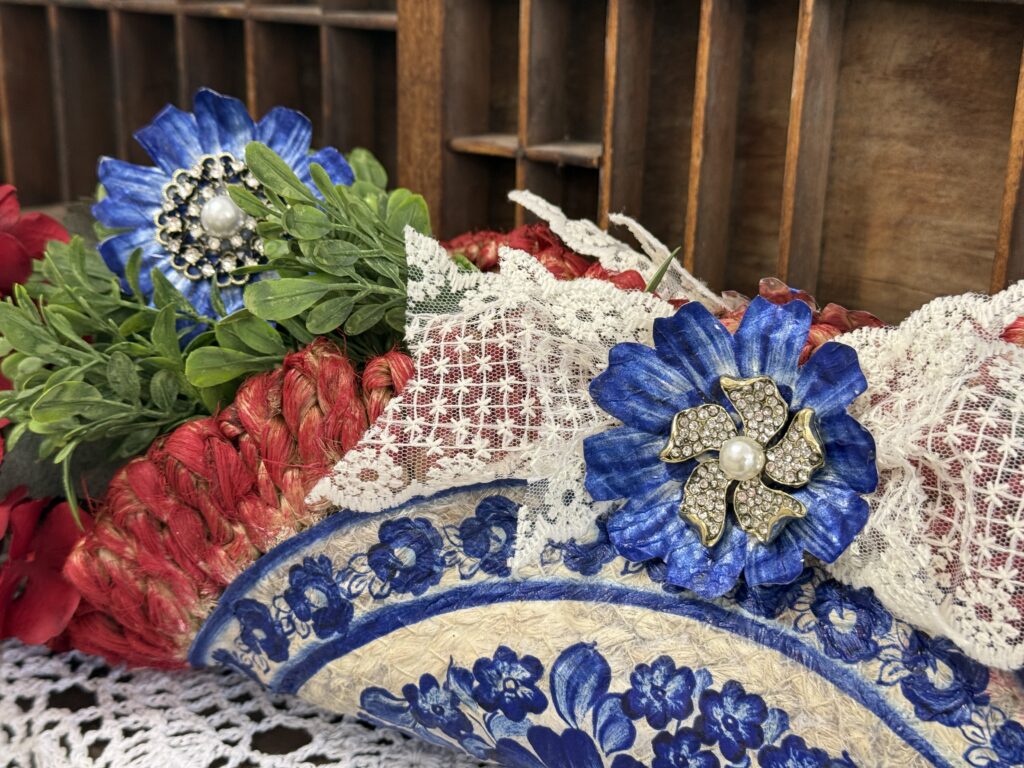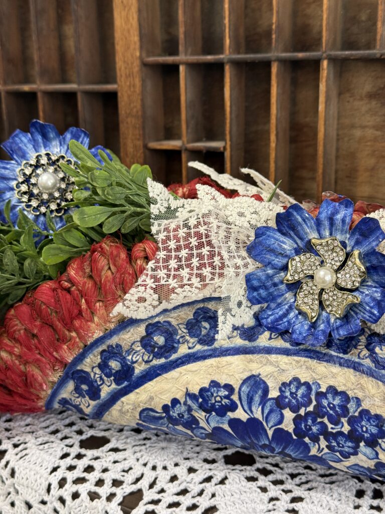 We’re taking a simple placemat from Walmart and giving it a fun makeover to create a unique centerpiece that’s full of charm and character. I had so much fun making this one and I love how you can customize it with your favorite colors and bling. This is the kind of DIY that you can customize for any season or occasion!