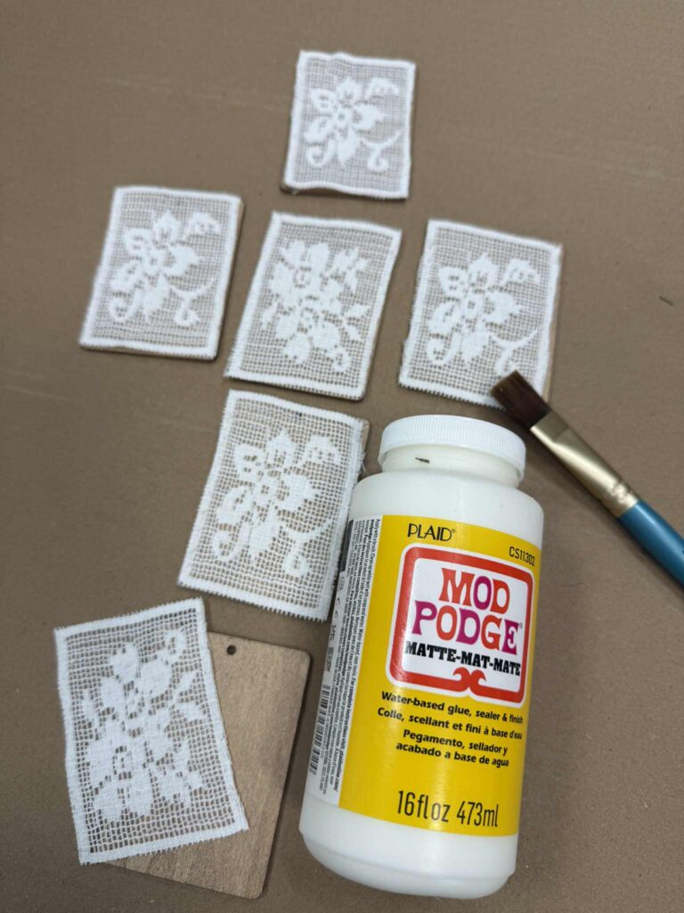 I absolutely love lace, and I’ve been having so much fun seeing all of the beautiful lace pieces we’ve been adding to our website lately. One piece in particular really caught my eye, and I knew right away that I wanted to turn it into something special. That’s what inspired me to use it to create a one-of-a-kind decorative cross that has both texture and character.