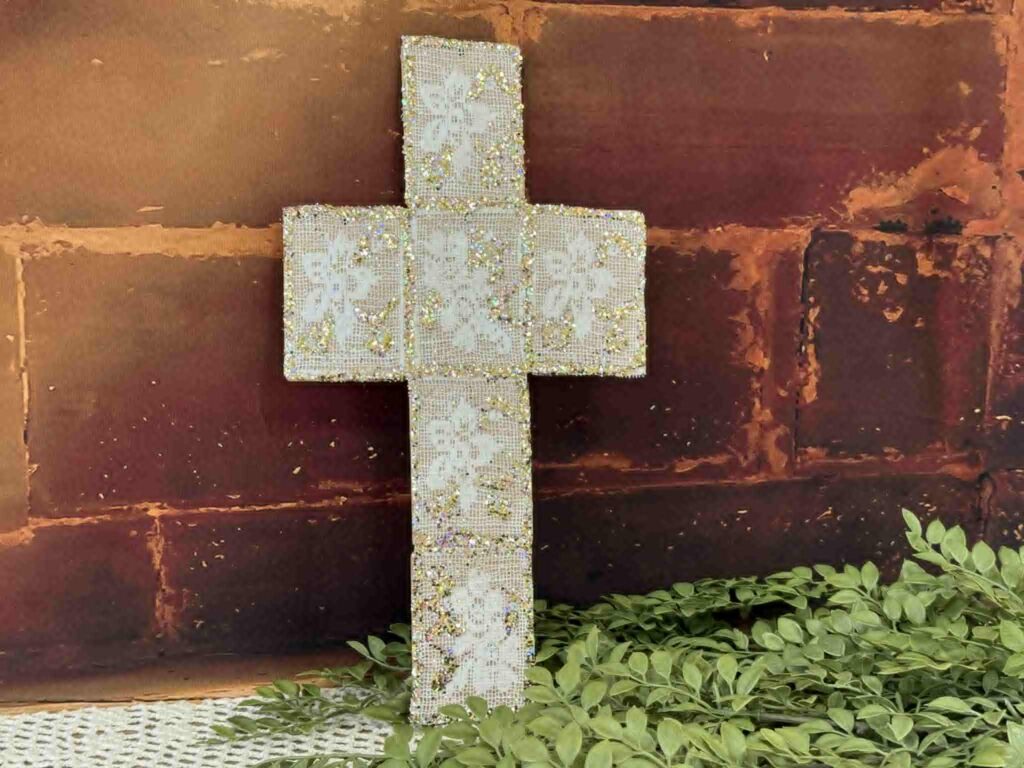 This cross is such an easy project to make, yet it adds so much charm wherever it’s displayed. It looks beautiful tucked into a shelf, placed on a mantel, or styled as part of a tabletop display. I hope this inspires you to get creative and give this cross a try using your own favorite colors and lace. It’s a simple project with a really meaningful and beautiful result.