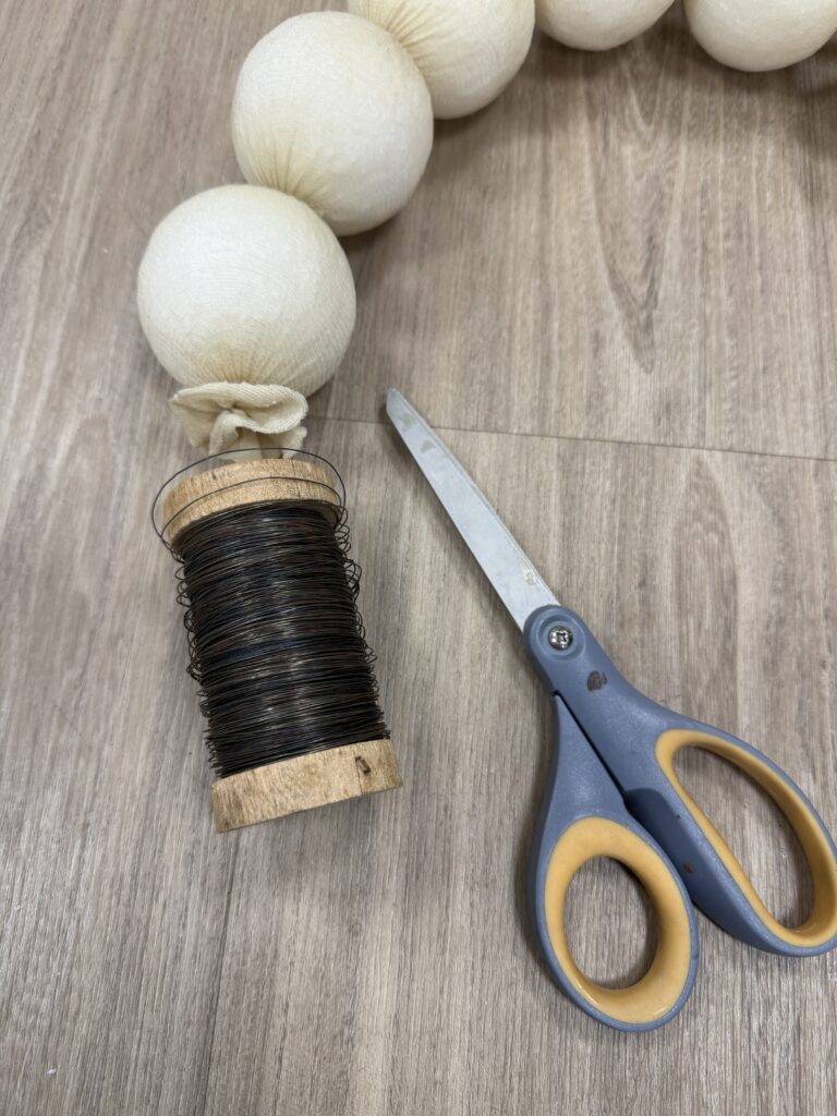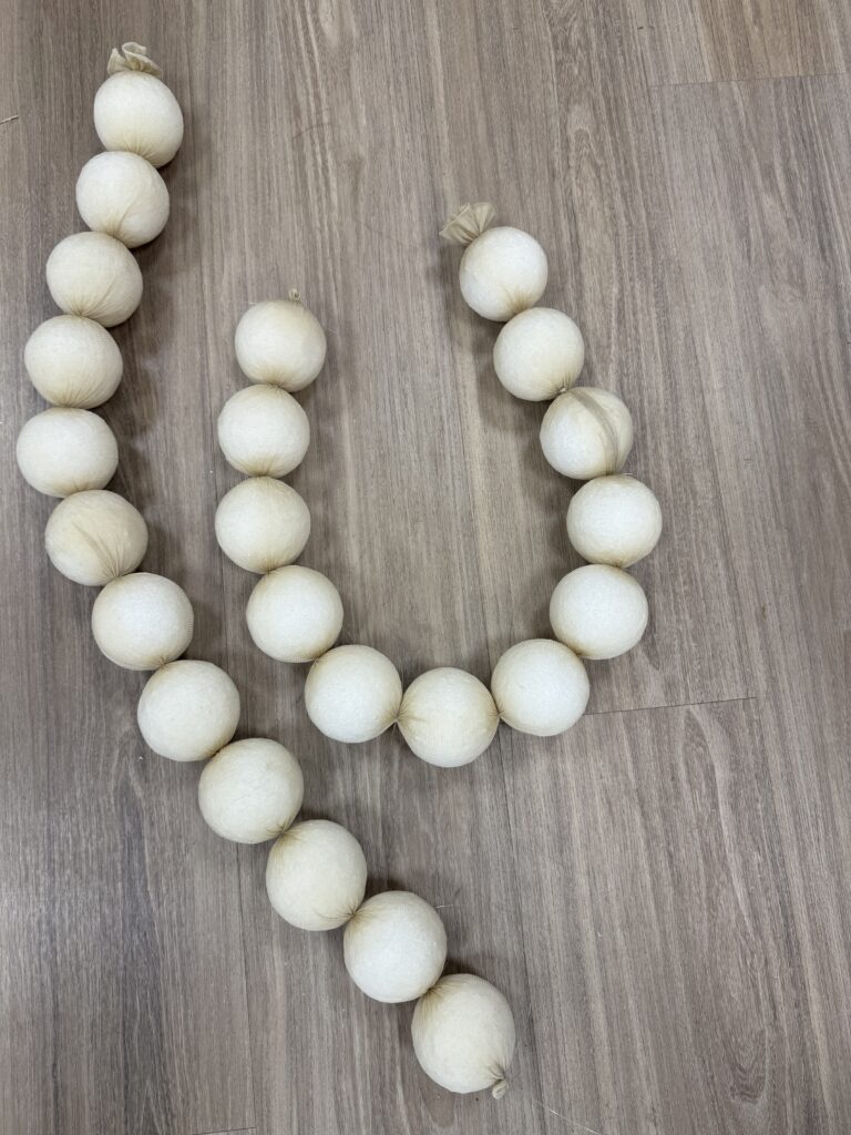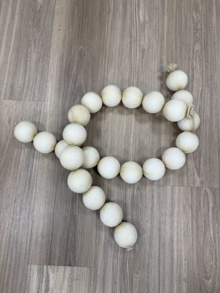 Each strand has 12 styrofoam balls. You will see that I tied little knots on each side — this gives the wire something to hold onto.