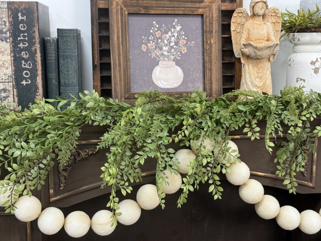 In this DIY Large Bead Garland, we show you how to create oversized “wood-look” beads using pantyhose and styrofoam balls. It’s a simple, budget-friendly trick that gives you that cozy, organic texture without the price tag of real wood. Whether you drape it across a mantel, style it on a shelf, or loop it in a bowl, this easy project makes a beautiful statement piece that feels perfectly at home in farmhouse, vintage, or neutral decor.
