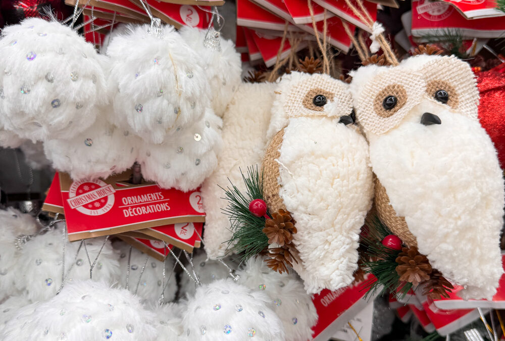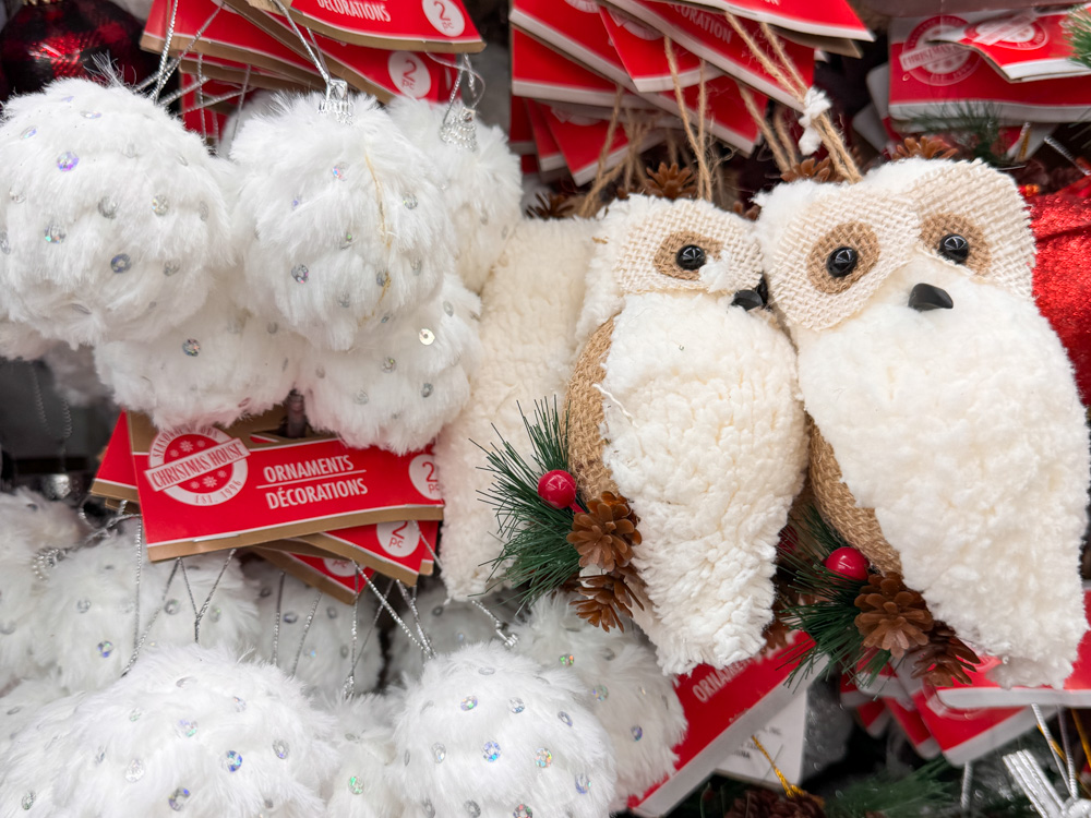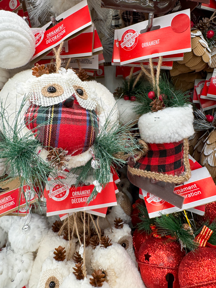 These are some of my favorite Dollar Tree finds for Christmas! The little plaid owl and boot ornaments are so unique and cozy-looking. I can already picture them tucked into a wreath or hanging from a garland over the mantel.
