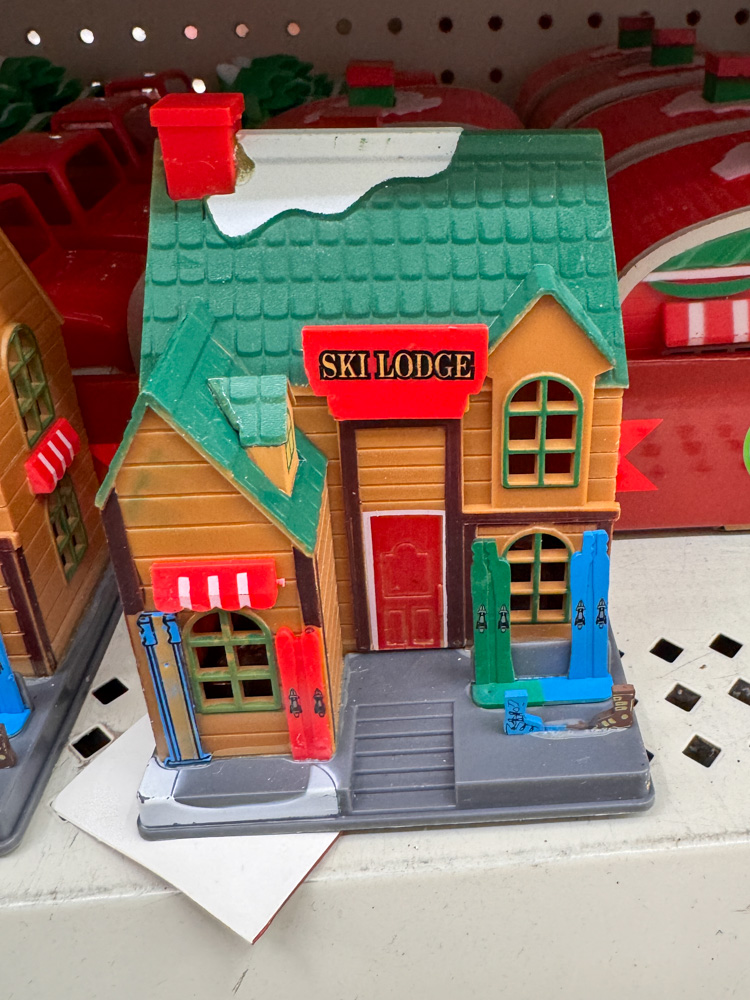 Every year, Dollar Tree brings out new pieces for their little Christmas village — and this ski lodge might be one of my favorites! It’s such a fun Dollar Tree find for Christmas to use in a tabletop display.
