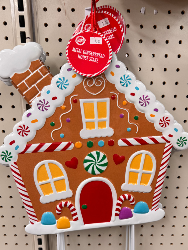This metal gingerbread house stake is so cute! It’s one of those Dollar Tree Christmas decorations that would look adorable in a planter, wreath, or front porch display.