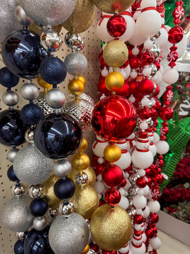 I couldn’t believe how gorgeous these ornament garlands are! Dollar Tree has them in several colors, and they’d look amazing draped across a mantel, wrapped around a tree, or even used as festive table decor. Such a fun Dollar Tree find for Christmas!