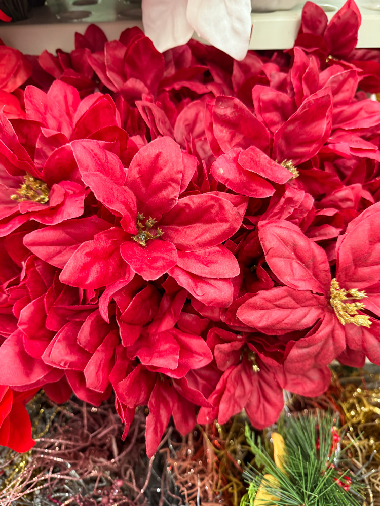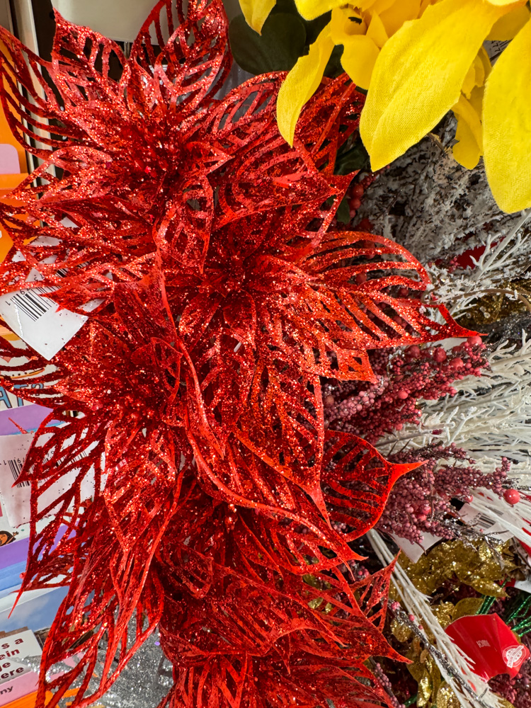 These big red poinsettias are always a Dollar Tree Christmas favorite! I like to grab a few bundles and mix them into garlands or wreaths for a fuller, festive look.