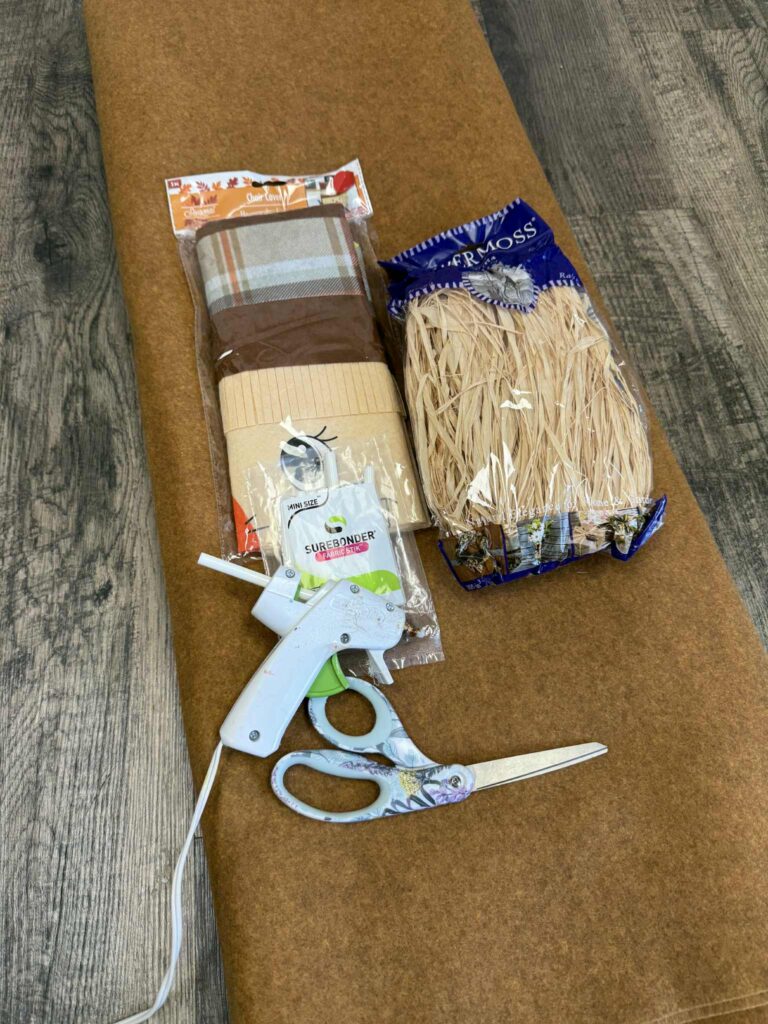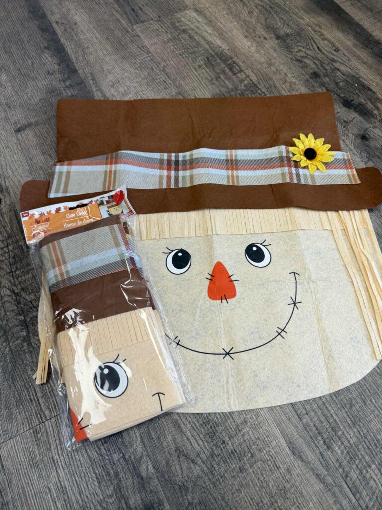 While browsing Dollar Tree the other day, I spotted a cute scarecrow head chair cover and instantly knew we could give it a fun makeover.