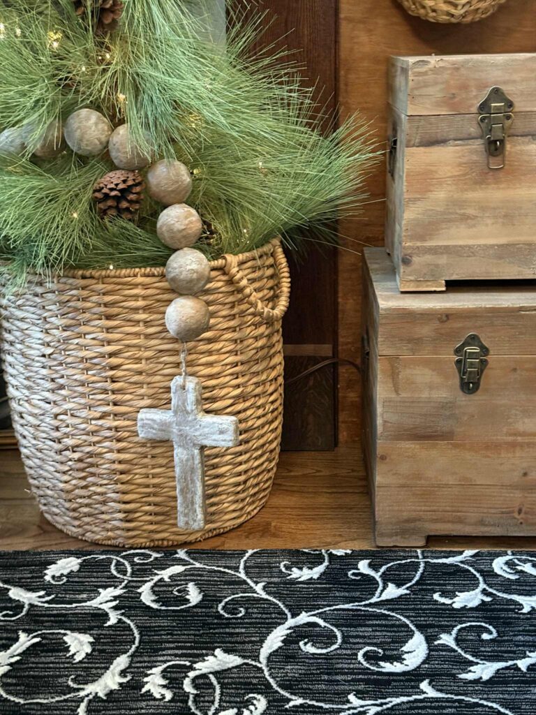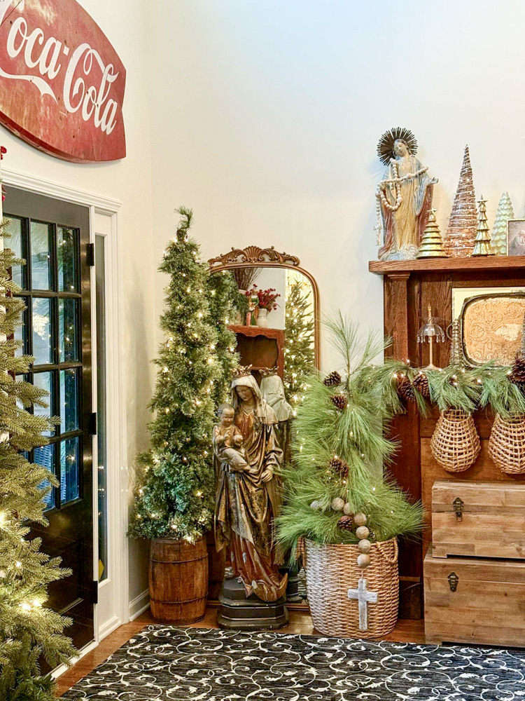 You’ll notice that I brought a variety of trees into the foyer, and they instantly made the space feel warm and inviting. I just can’t help myself—I love having trees and soft twinkling lights up all year long. They add such a magical glow, no matter the season, and they make the entryway feel so cheerful the moment you walk through the door.