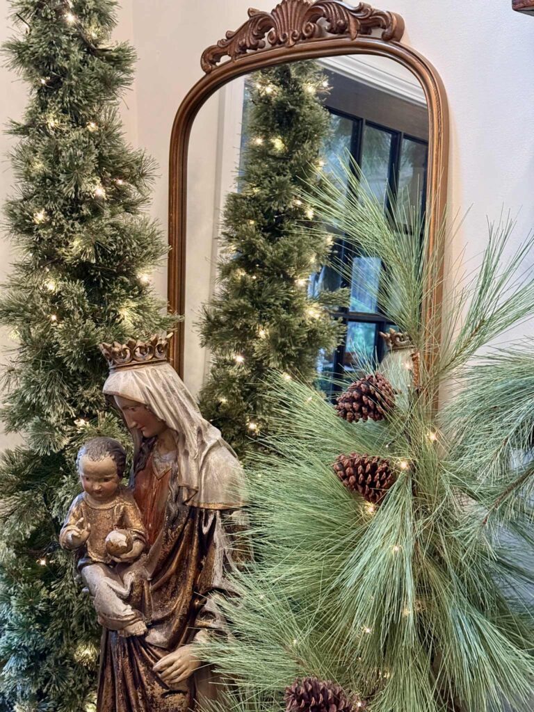 I decided to bring one of my favorite pieces into the foyer—a beautiful statue that used to sit in my dining room. I’ve always loved it, and moving it to this space gave the whole entryway a little extra charm and personality. Sometimes just relocating a piece you already own makes the biggest difference! If you love this statue as much as I do, you can find it on Amazon by clicking my referral link down below.