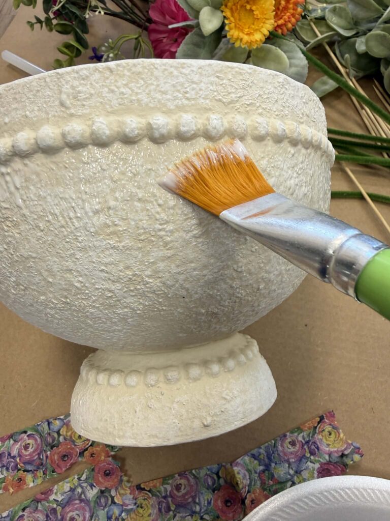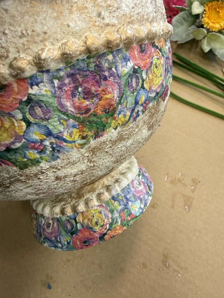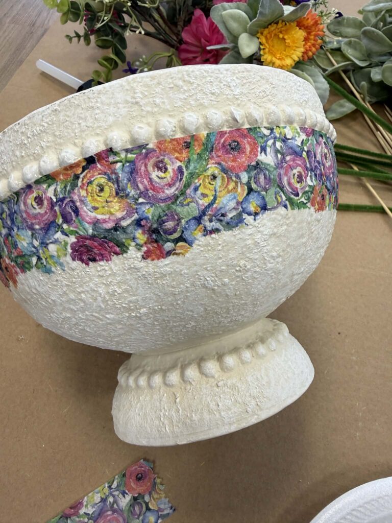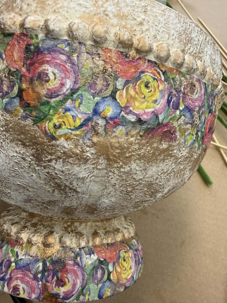 I repeated this process along the top edge of the planter and then continued around the lower portion.