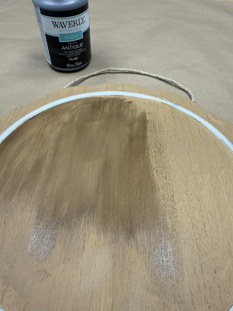Next, brush Waverly Antique Wax over the chalk-painted surface.