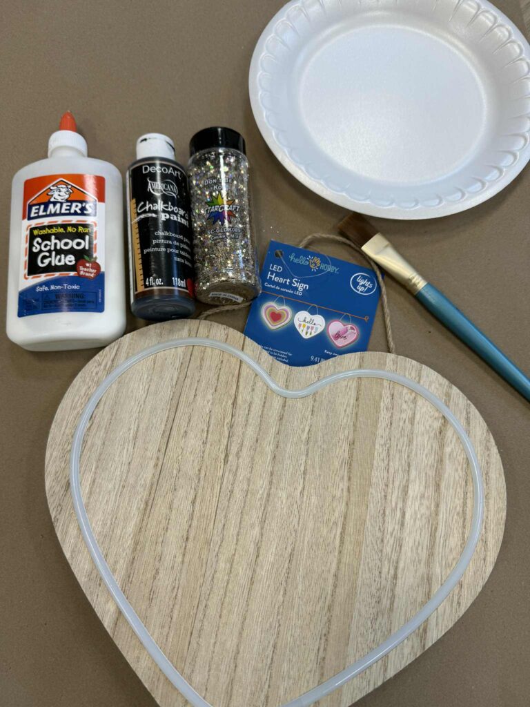 Walmart has some really fun LED signs that are perfect for crafting. They come in a variety of shapes, and I couldn’t resist using the heart-shaped one to create something special for Valentine’s Day.
