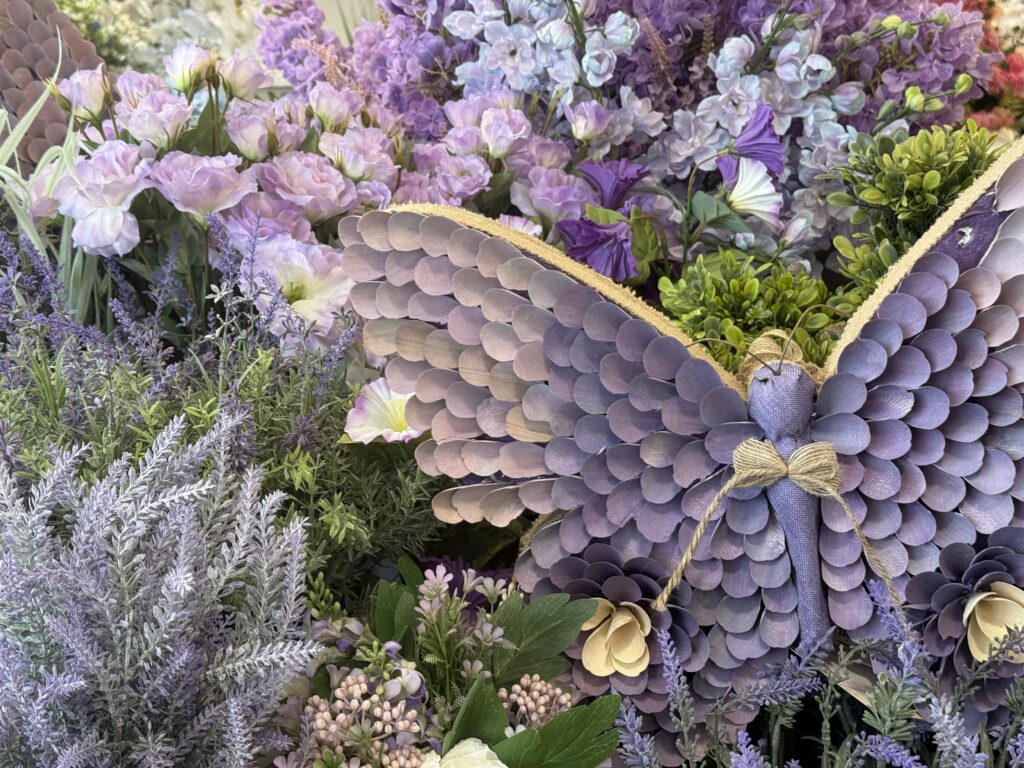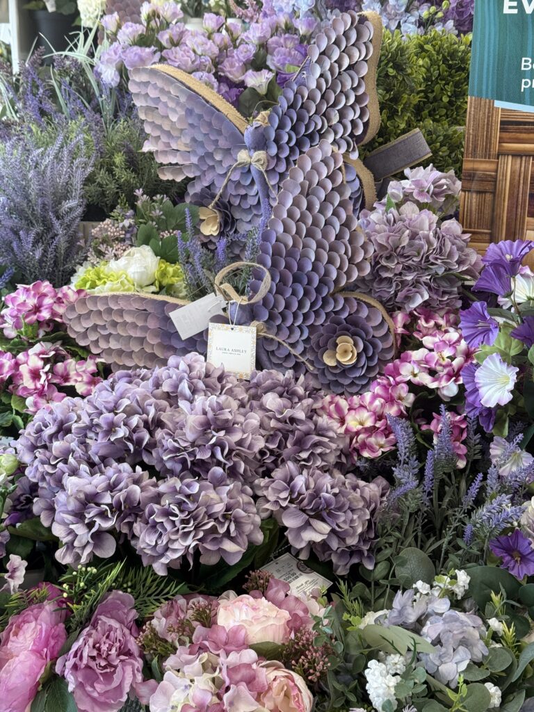 Wow! There is so much beautiful decor. Love the floral but the purple butterfly is absolutely stunning.