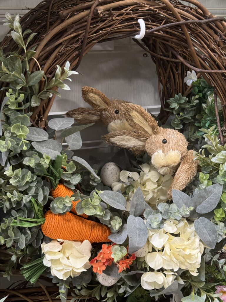 This bunny wreath is full of sweet details and makes a great front door piece.