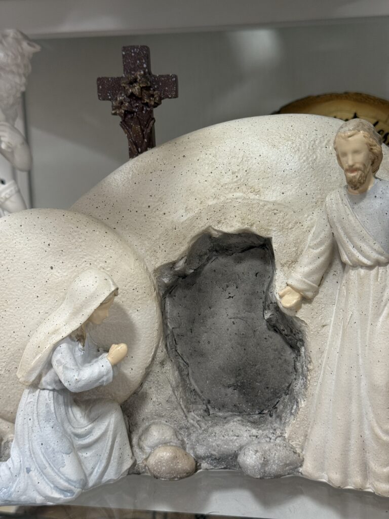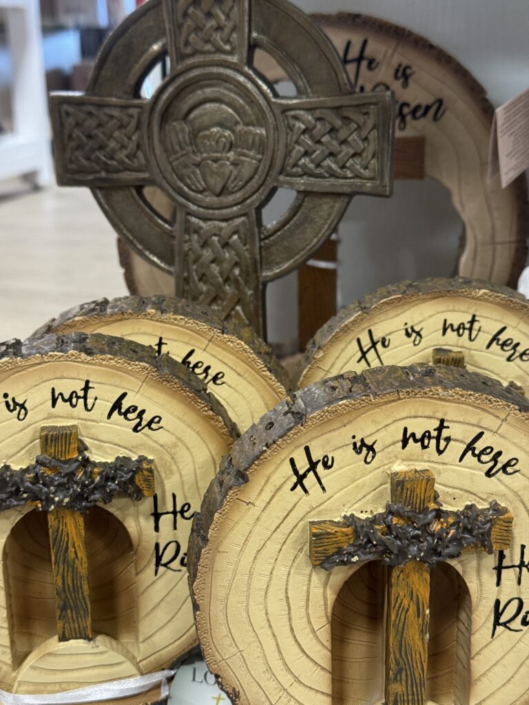 The empty tomb display is simple, powerful, and perfect for a faith-focused space.