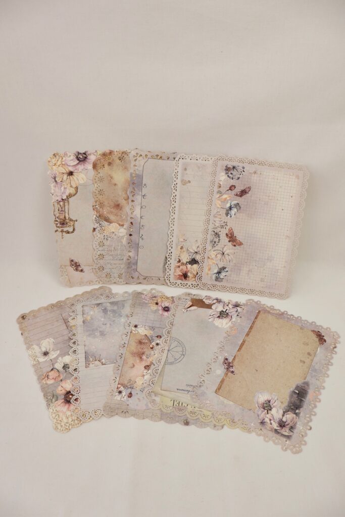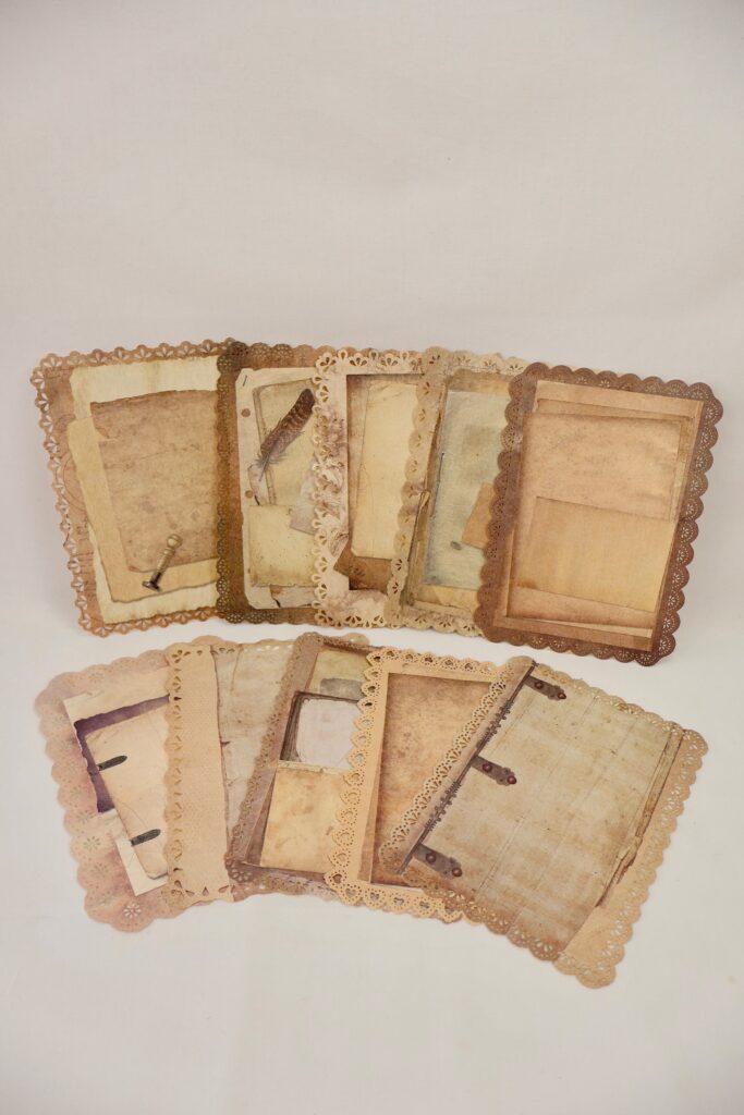 I am just loving these Hollow Lace Papers! You’re going to get a mix of soft, pastel designs with butterflies, florals, and pretty little details, plus another set that has those rich vintage browns with an aged, antique look. Both sets have the most beautiful lace-style edges, and they’re perfect for layering into your pages. Whether you want something light and romantic or rustic and old-fashioned, these papers will give your journal such a unique and elegant touch.