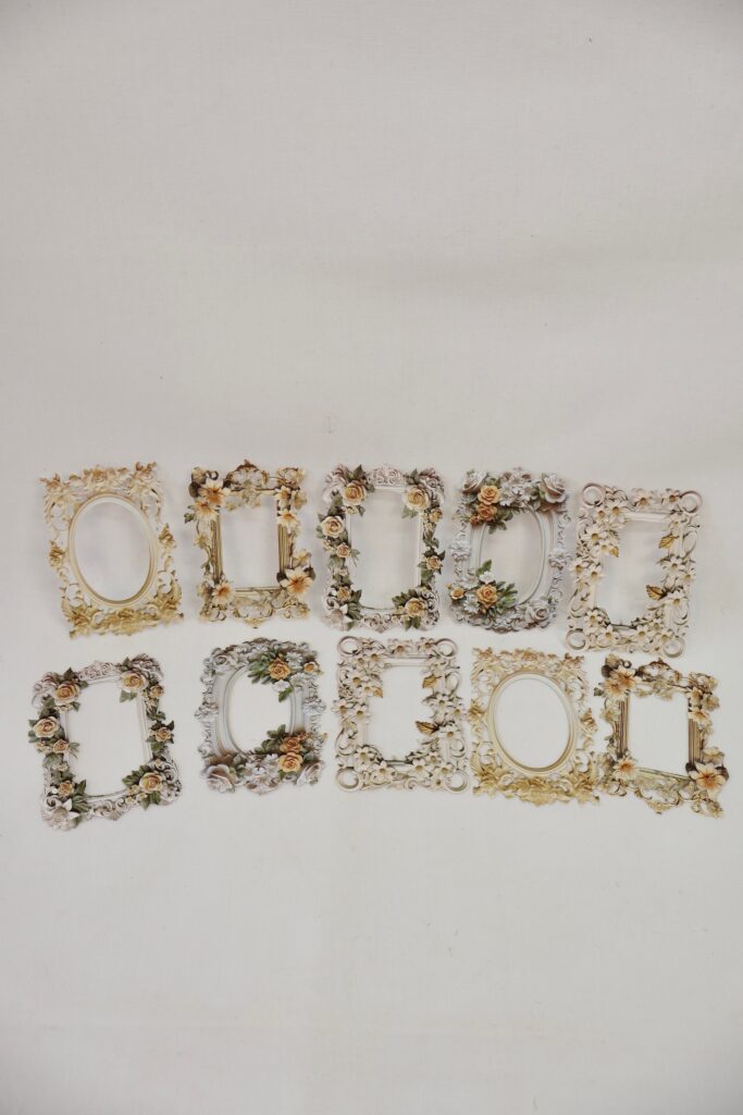 The kit also includes 10 ornate frame cutouts, each designed with beautiful floral and scroll details. These come in a variety of soft, vintage-inspired colors with hints of gold, cream, and muted greens. They’re perfect for highlighting photos, quotes, or special embellishments in your junk journal, giving your pages an elegant and timeless touch.