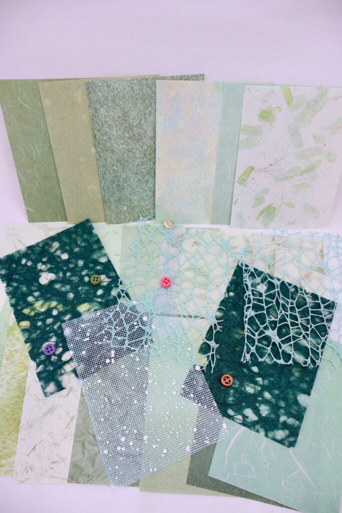 Inside the two bundles included in your kit, it’s all about texture! Each pack is filled with unique materials to help your pages pop—fun accents, a handful of buttons, and cardstock designed to mimic a variety of playful textures. One pack leans into greens and darker tones, while the other has more peachy, brighter colors to give you a cheerful contrast.