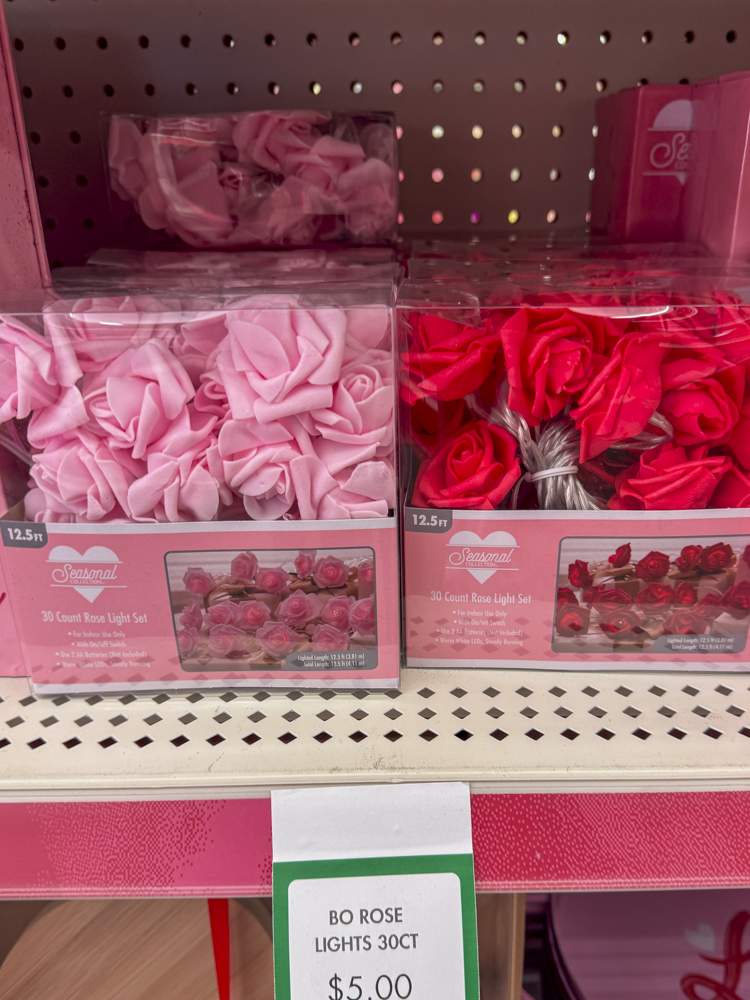 Rose light strands that add the prettiest glow to mantels, shelves, or headboards.