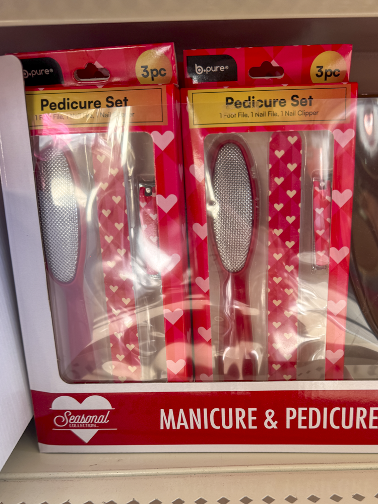 A manicure and pedicure set that makes the easiest Valentine basket filler!
