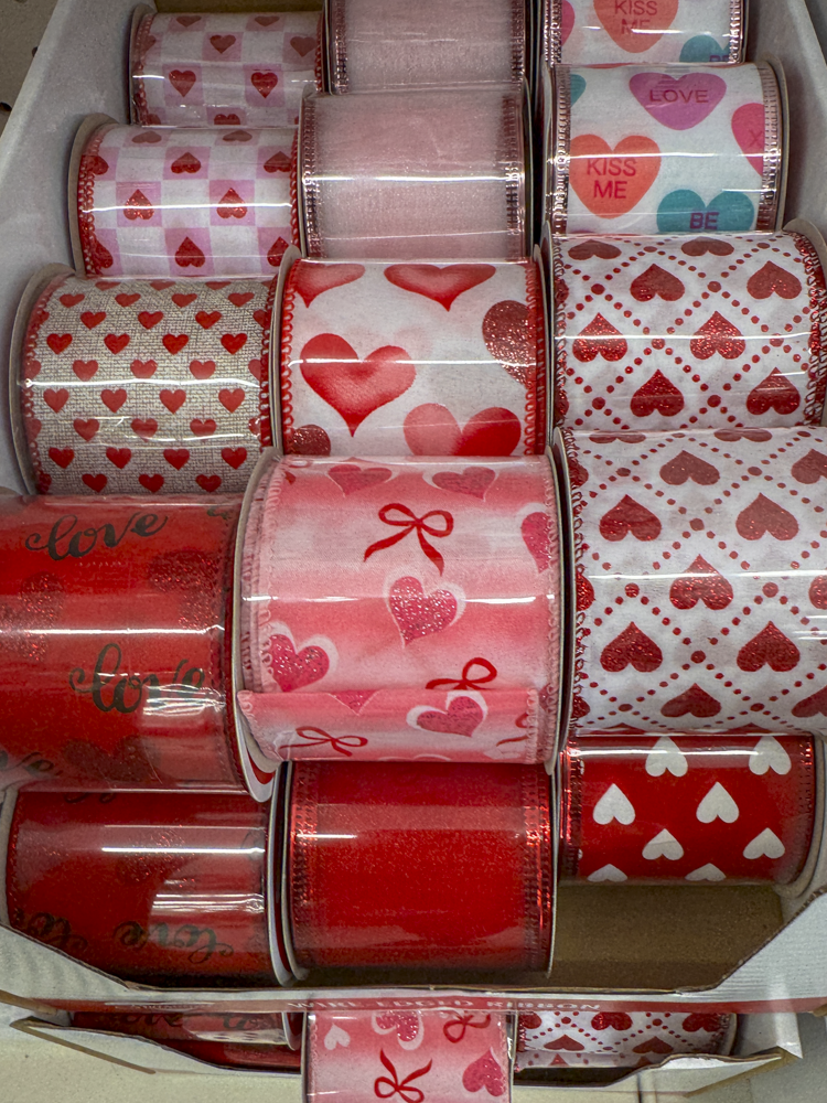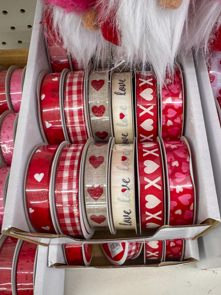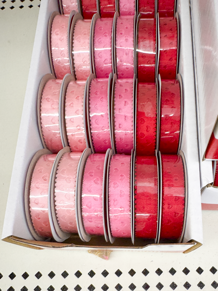 They have a ton of Valentine ribbon options that are perfect for wreaths, bows, and DIYs!